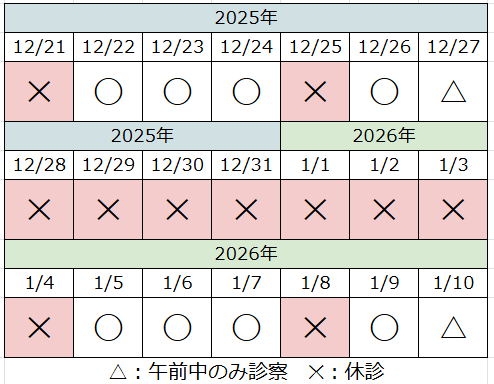 休診日:木曜、土曜の午後、日曜、祝日
